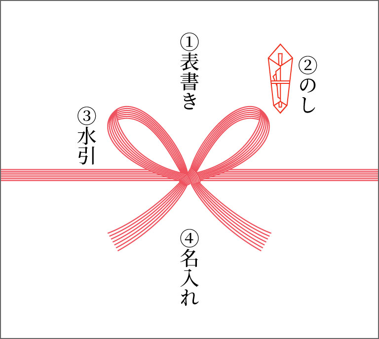 送り主の姓または姓名や会社名等を表記します。必ず名入れをしなければいけない訳ではありませんが、先様へのお心遣いとお考えください。