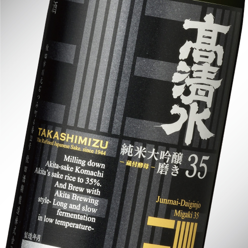 華やかな香りを持つ高清水オリジナルの蔵付酵母は、御所野蔵の仕込み室に祀った神棚に生息した酵母を分離したものです。原料米には秋田県が吟醸酒用酒米として開発した「秋田酒こまち」を使用。御所野蔵敷地内に併設する精米工場で35%まで磨き、御所野蔵杜氏 加藤均が醸しました。リンゴや洋ナシのような清々しく爽やかなニュアンスの上立香。口に含むとキラキラとした透明で力強い酸をまとったアタック、そこに複雑でスパイシーなアクセントのある口中香が加わり、立体感のあるハーモニーを奏でます。