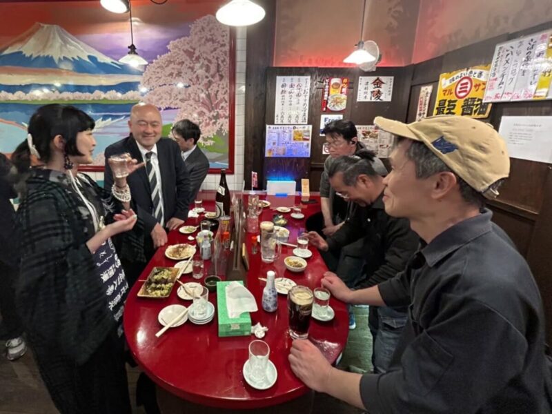 帰宅ラッシュが始まる夕方に着物女子会、田町の駅から直結の人気の立ち飲み屋「やまとや」さんに行きました。昭和レトロな店内は赤いテーブルが、壁画の桜と富士山が、レトロポスターが可愛いのです。レトロ純喫茶も大好きだけど、レトロ可愛い酒場のほうがずっと好き♡駅からすぐで15時開店ということなので、コーヒー休憩するくらいならこちらのお店に行きたい感じ笑